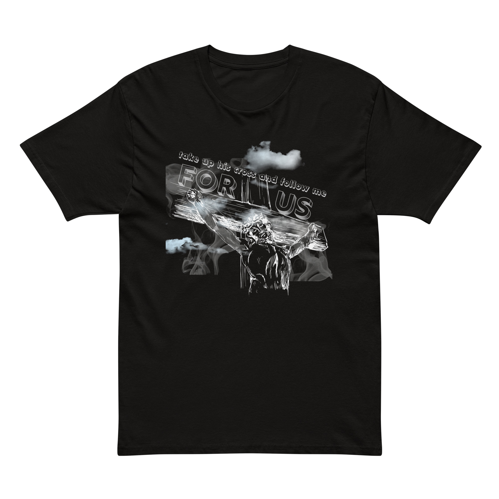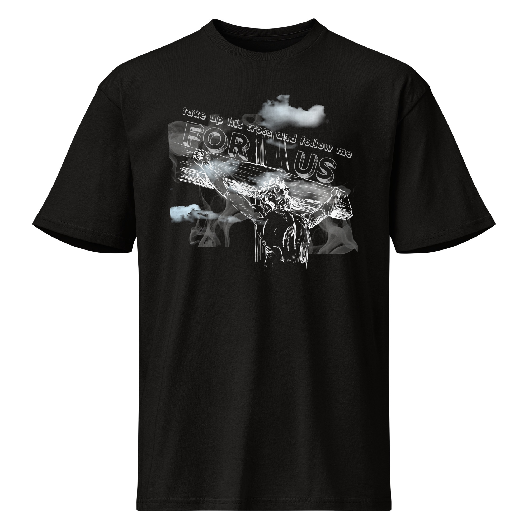 This powerful design captures the heart of the Gospel—His sacrifice and our calling. Featuring an image of Him on the cross with the words “For Us,” and the quote “Take up your cross and follow me,” this shirt is a bold reminder of love, sacrifice, and true discipleship. Wear it as a statement of faith, a conversation starter, and a daily call to live with purpose and devotion.