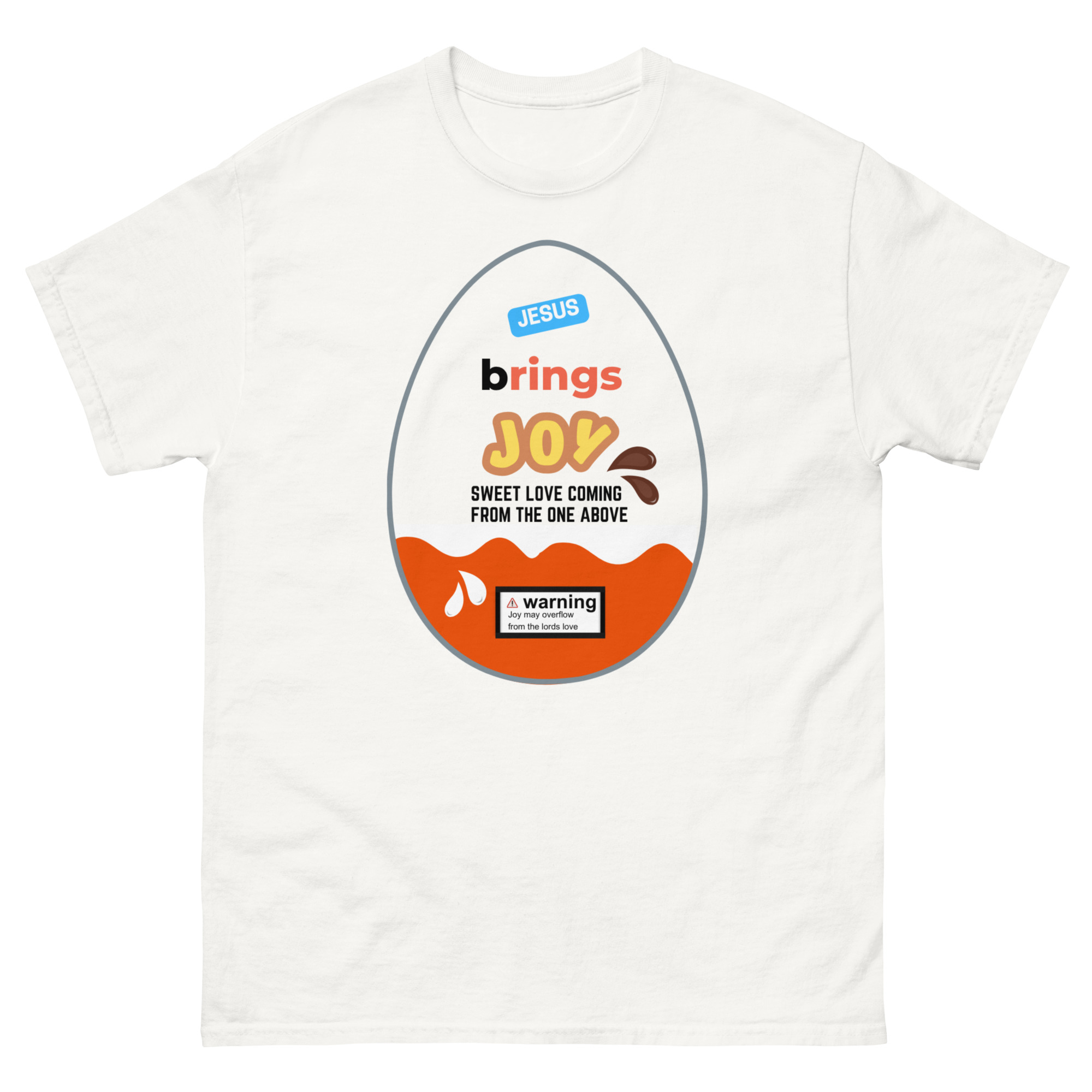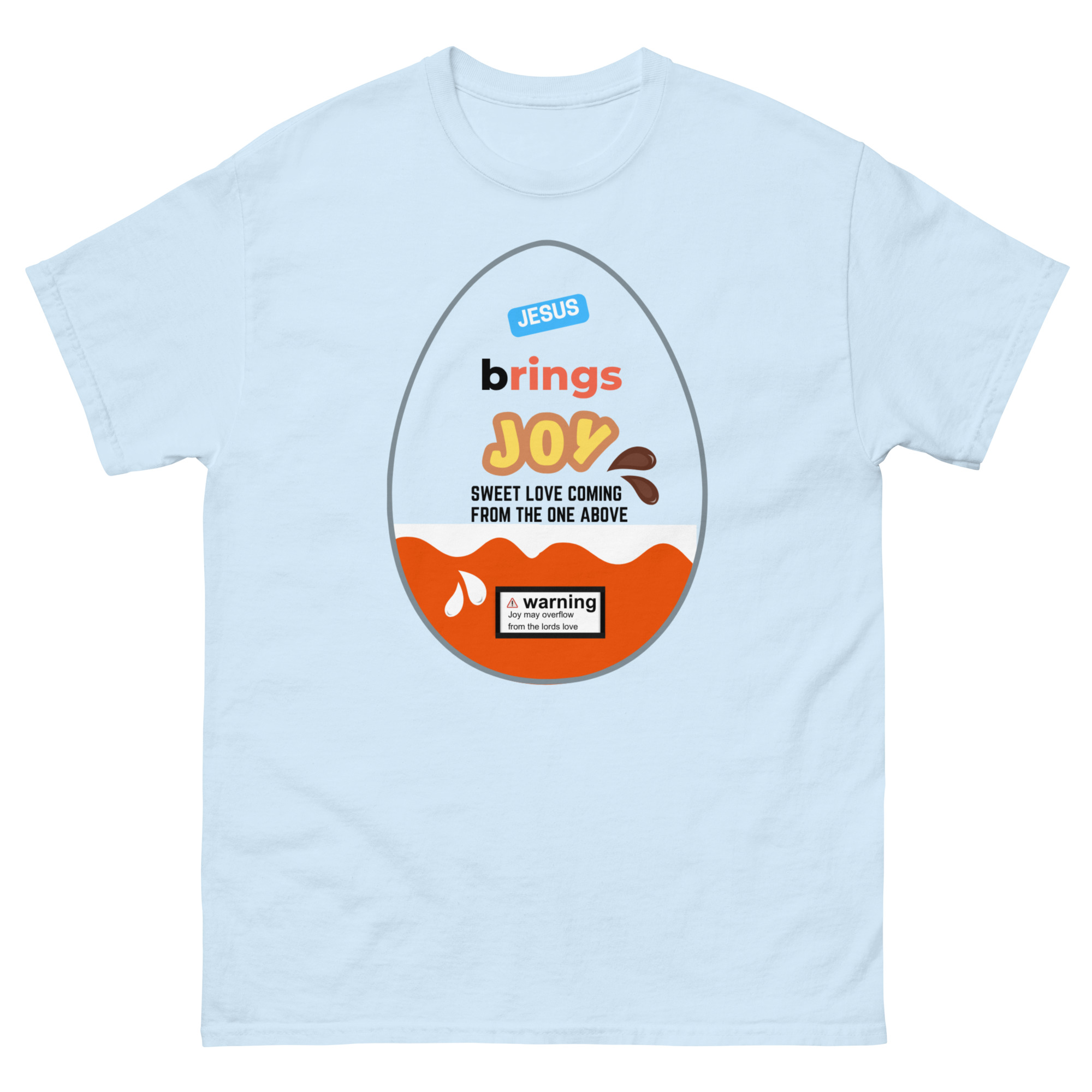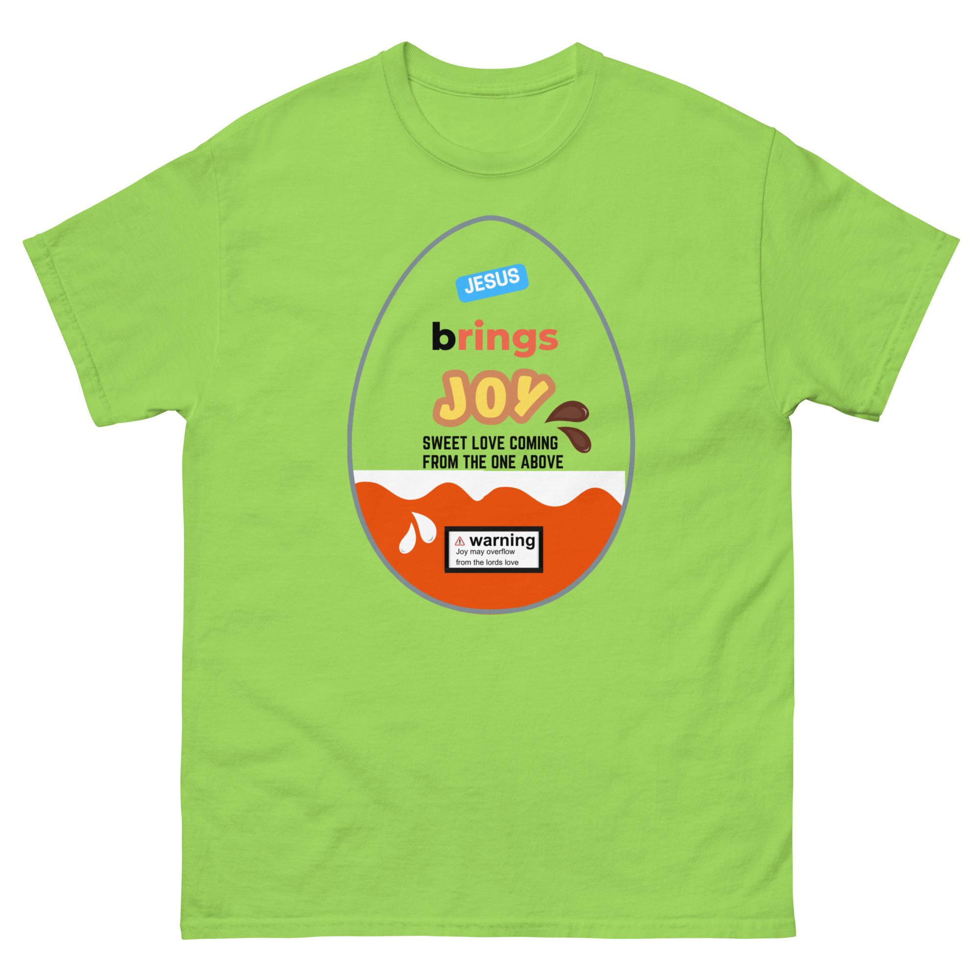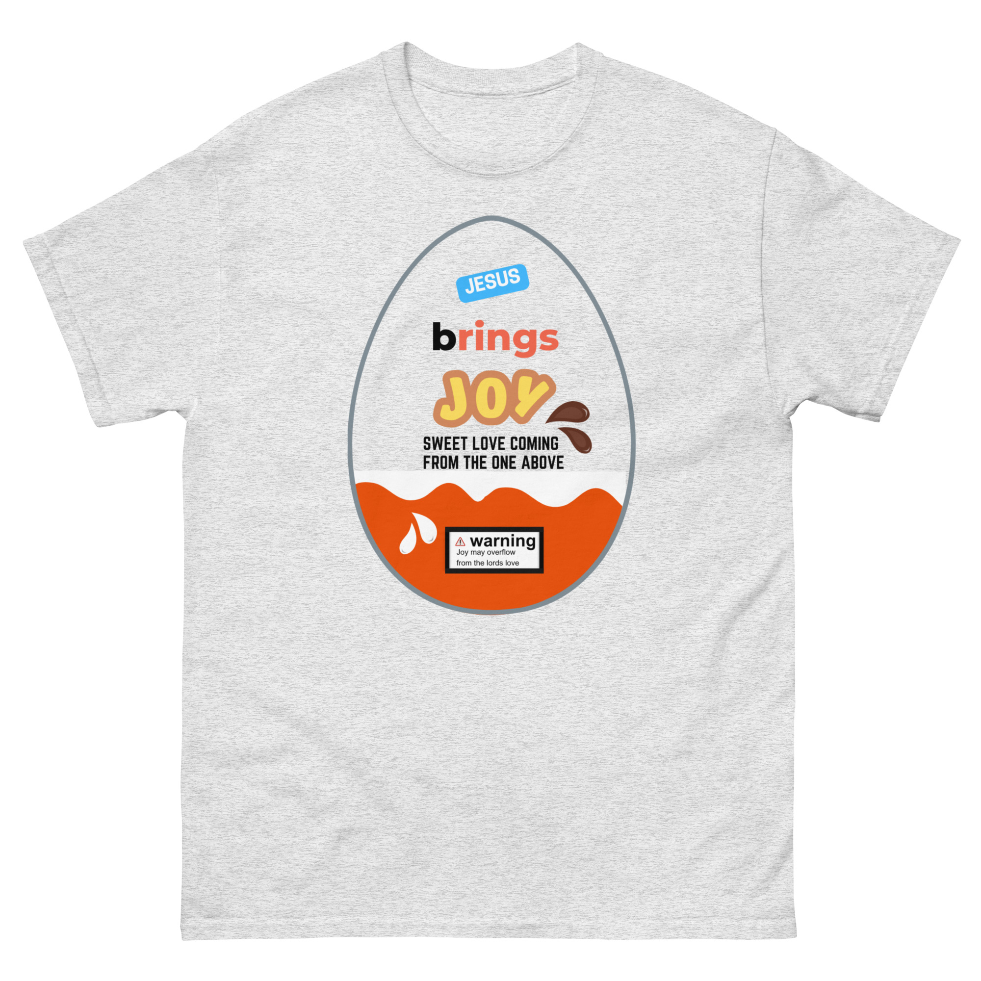Wrap yourself in a message that’s as uplifting as it is eye-catching. Our Jesus Brings Joy tee features a fun, candy-inspired egg design that brings a playful twist to a powerful truth. Bright, cheerful, and full of meaning, this shirt is perfect for sharing your faith in a bold yet joyful way.