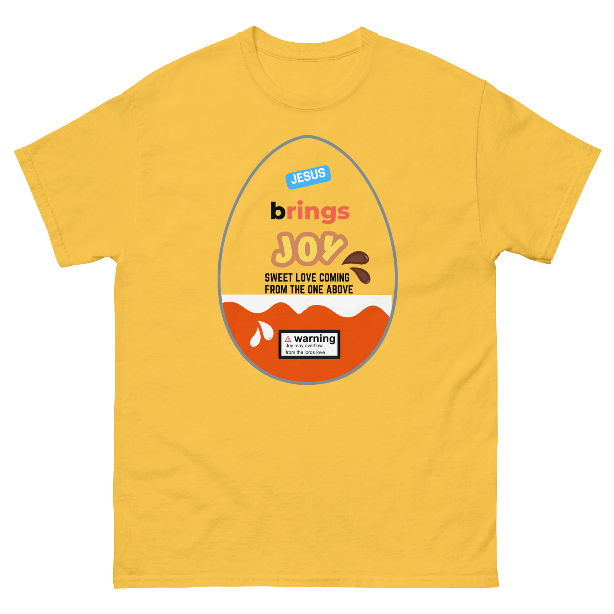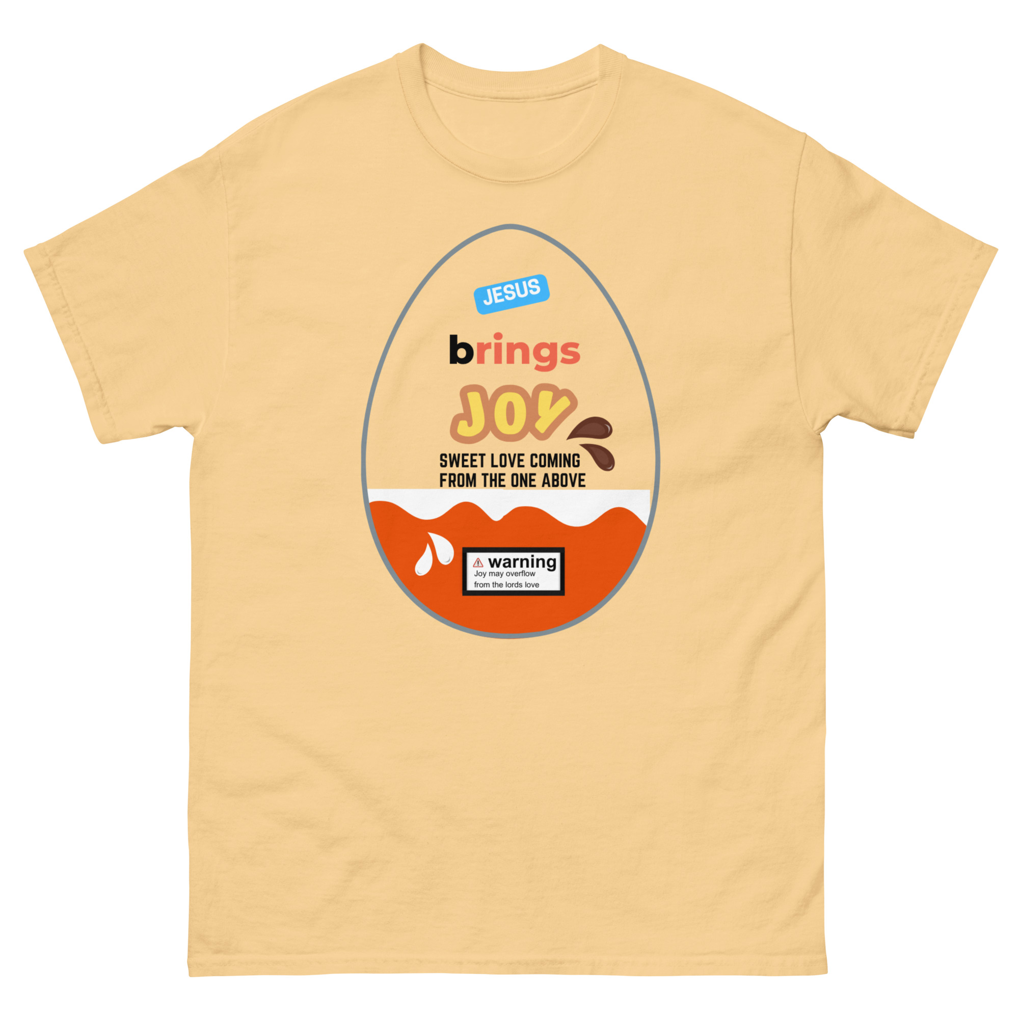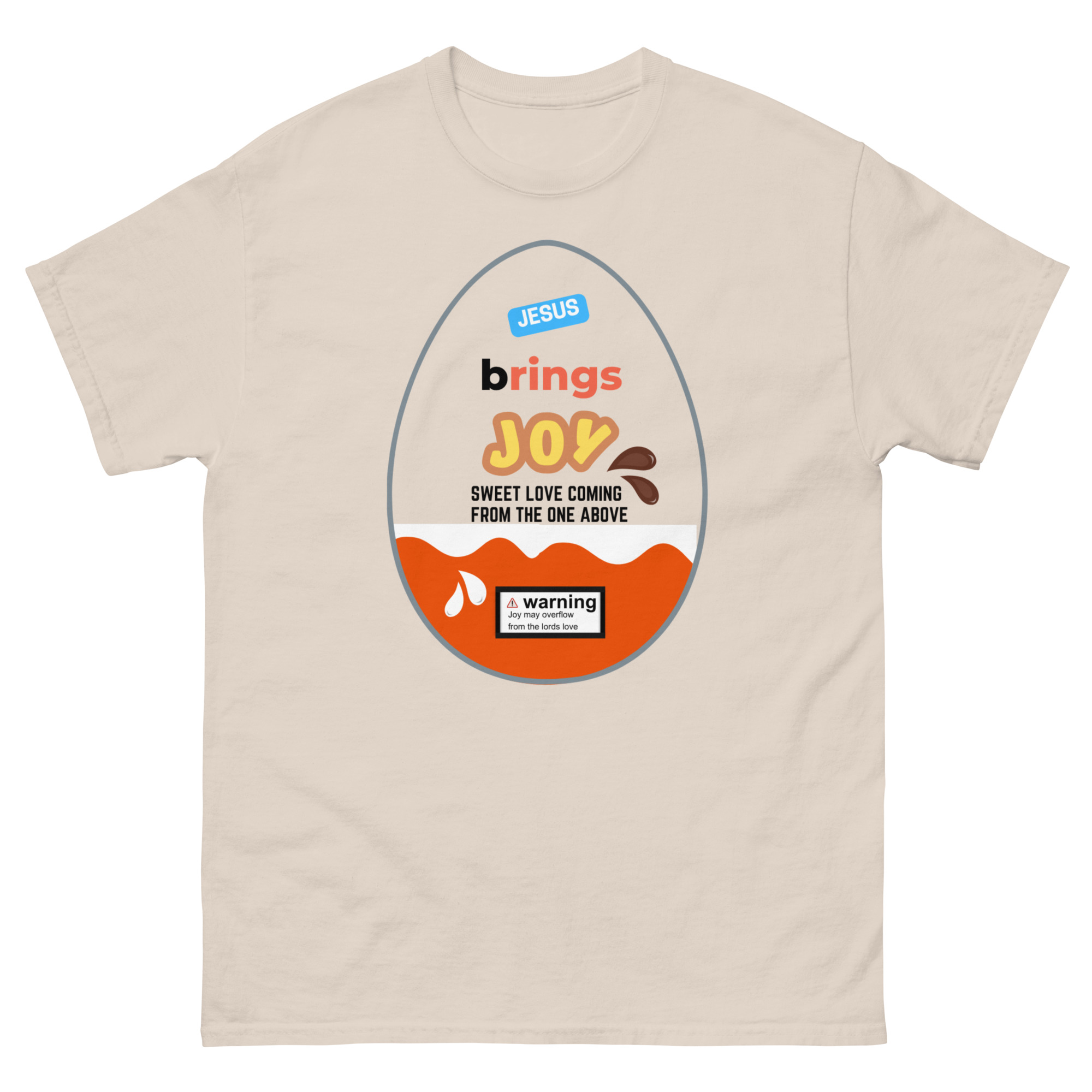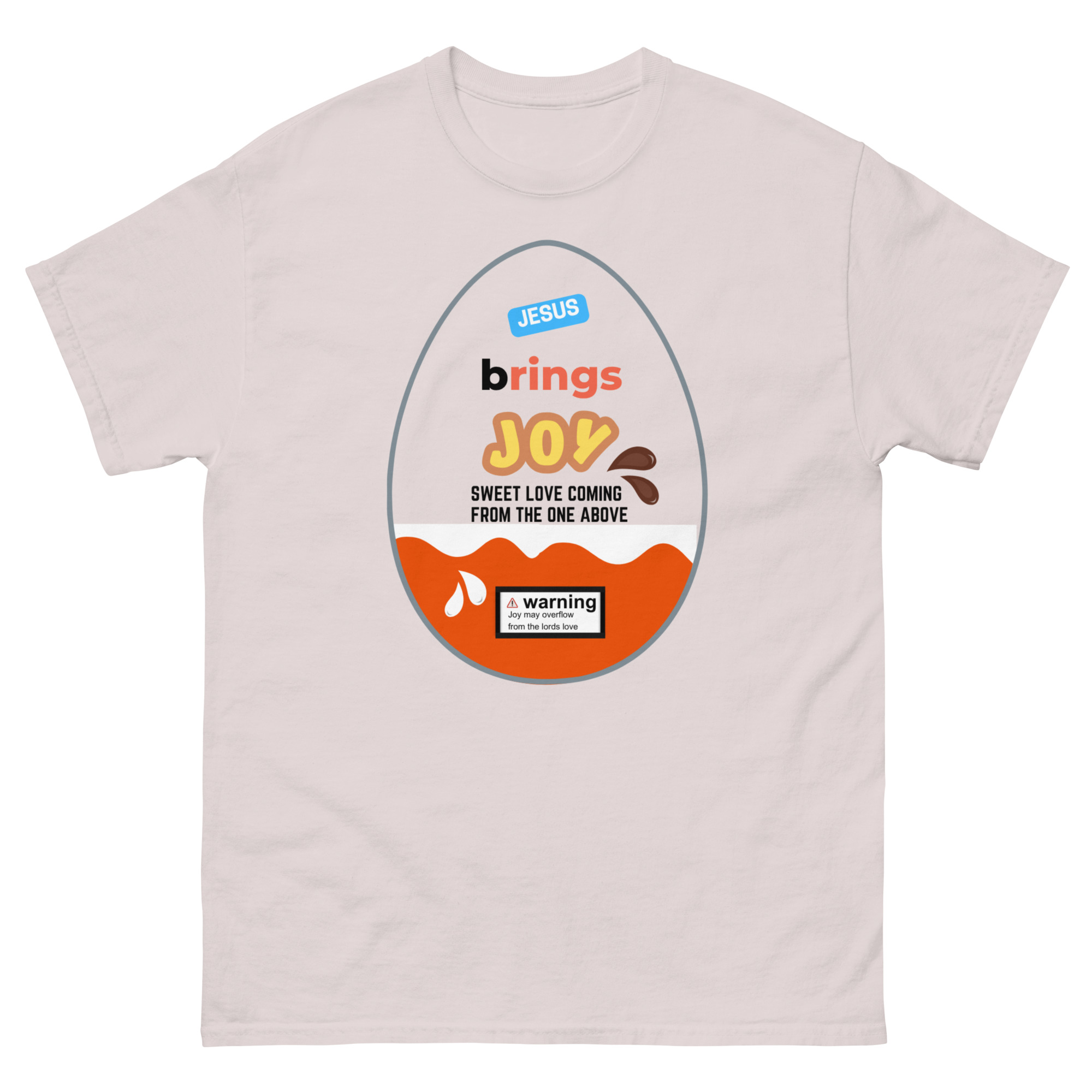 Wrap yourself in a message that’s as uplifting as it is eye-catching. Our Jesus Brings Joy tee features a fun, candy-inspired egg design that brings a playful twist to a powerful truth. Bright, cheerful, and full of meaning, this shirt is perfect for sharing your faith in a bold yet joyful way.